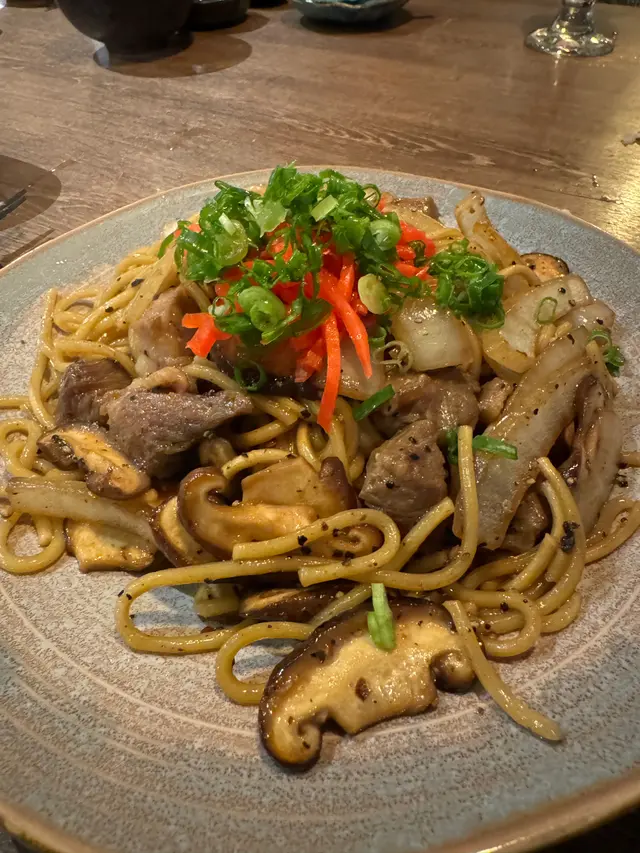 和牛用黑椒洋蔥炒香,炒麵口感Q彈, 每條麵條沾滿醬油,最正係加埋薑絲,令味道更提升!