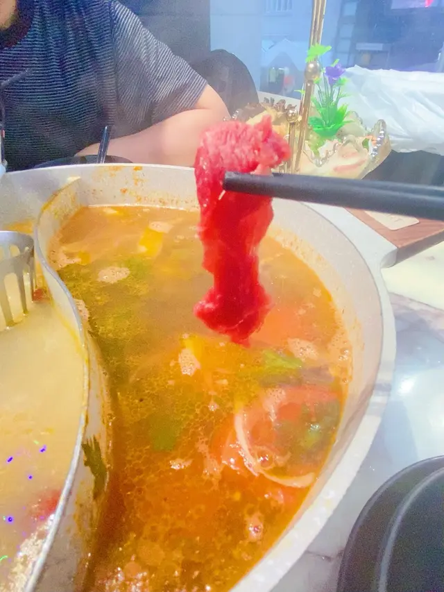 湯底揀咗椰子雞拼蕃茄🍅蕃茄湯底酸甜開胃,手切肥牛睇到雪花紋,淥兩淥就食得!入口勁濃牛味😍紫菜響鈴索湯一流。
