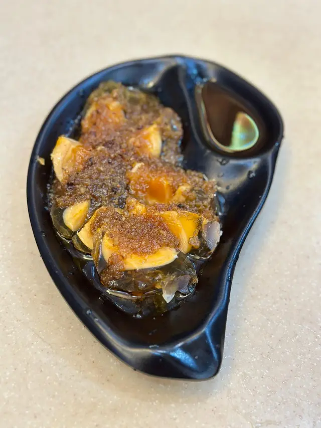 小食方面,今次叫左黃金皮蛋同埋涼伴墨魚頭,一上枱見到份量又係好多,而且最驚喜係有超多蒜泥。黃金皮蛋的顏色主要係用左四川餣法,所以同平常食開的廣東皮蛋唔同。呢種餣法除左顏色比較鮮艷外,最重要係蛋黃少左阿摩尼亞味,令蛋香特別濃,配埋蒜泥同香醋特別惹味。