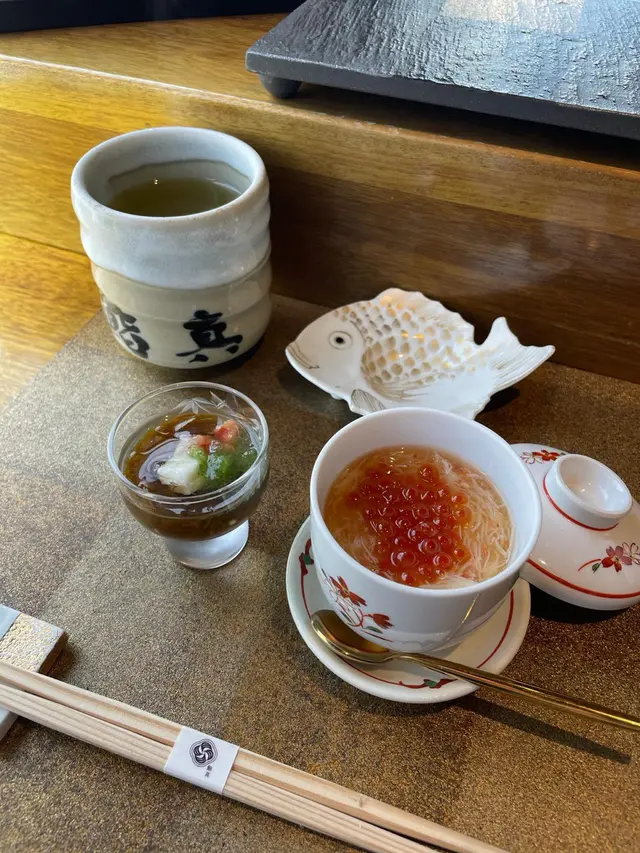 有水雲上面加咗啲蘋果同埋醋,食嘅時候有少少果香。茶碗蒸好正,上面有一絲絲蟹肉同三文魚子,非常鮮味😀