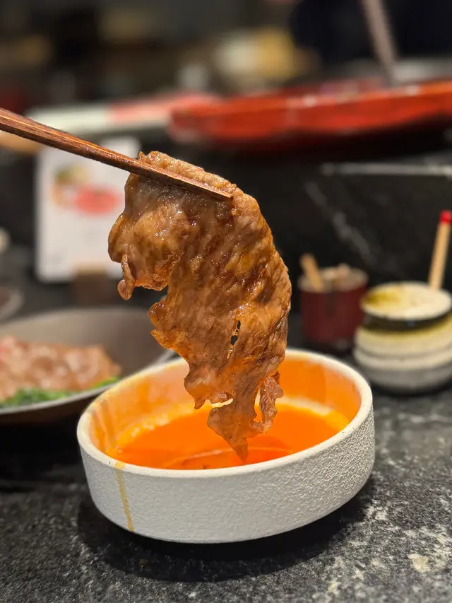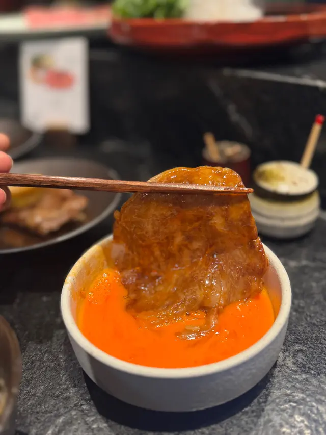 選用來自熊本「和王」和牛🐮部位包括肉眼、西冷同埋牛肩肉。用咗日本糖烤嘅方式去煮,入口柔嫩、香氣豐富而不膩,脂香在口腔中慢慢滲開💫