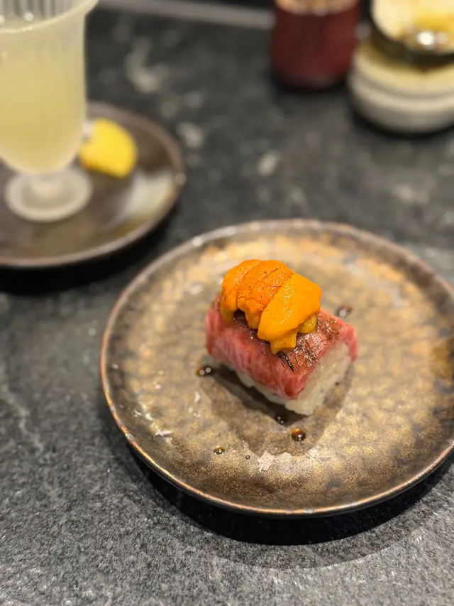 用炭火灸過的和牛鋪上鮮甜海膽,一入口炭香油脂與鮮味交織,完全驚艷😍。