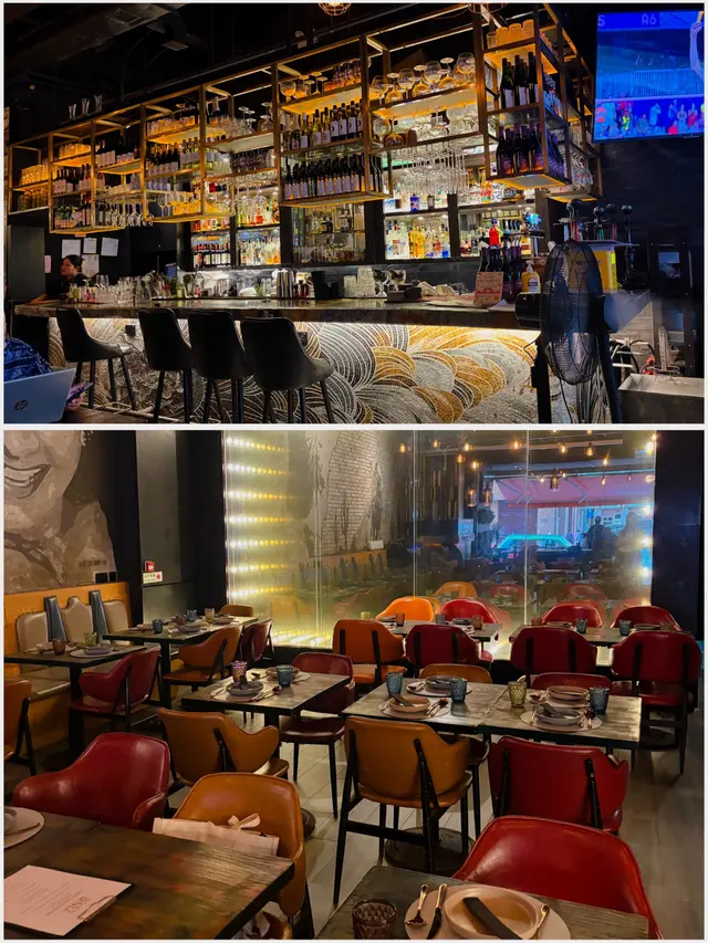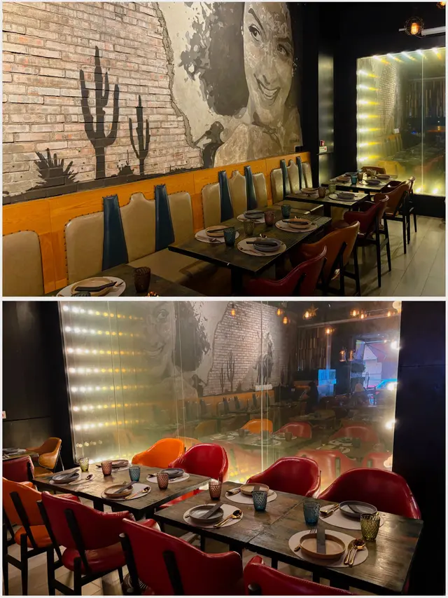 再次回訪這家尖沙咀地道墨西哥餐廳氣氛依舊熱鬧。裝修別緻有格調,半開放式設計搭配略暗燈光營造出輕鬆氛圍,下午時段較晚上寧靜。室外座位適合歡聚小酌,室內空間寬敞,後方玻璃窗投射巧妙增加空間感。地板與牆身的花紋壁畫展現獨特個性,整體環境充滿異國情調。