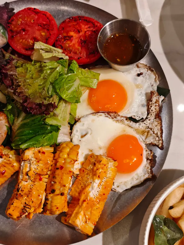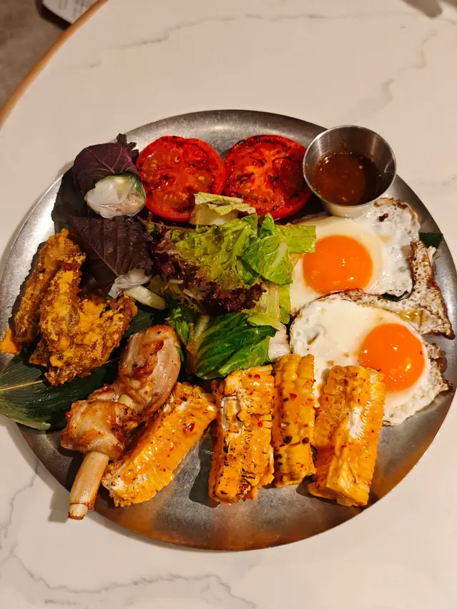 鹹蛋黃雞翼香脆惹味,醬烤粟米條甜甜地,簡茅雞肉串香料夠濃,仲有豬肉米卷、太陽蛋同烤蕃茄,沙律菜清新,豐富又好食!