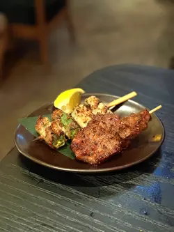 串著秋葵,外皮焦香,黑豚肉嫩、秋葵酥脆,帶淡淡香料香。牛舌厚切烤得外焦里嫩,帶胡椒香,嚼起來軟嫩又有彈性。