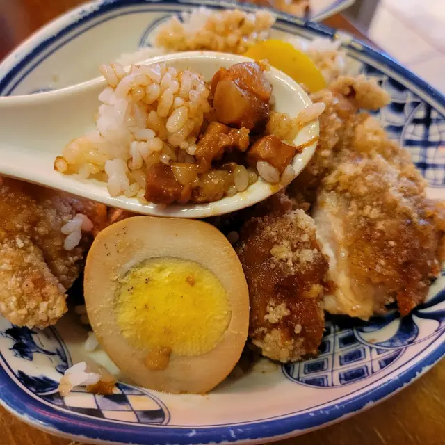 魯肉飯的醬汁鹹香,有切碎的豬肉及一點點油脂所以十分香口;鹵水蛋的顏色滲至近蛋黃,夠入味。
