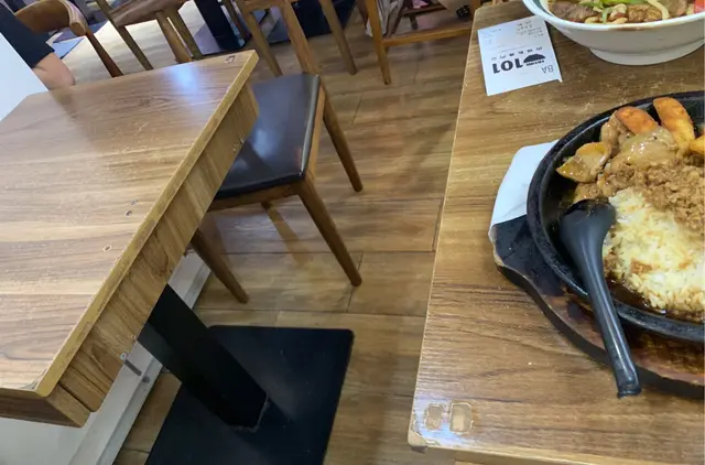 當我地既餐點都送齊時,我們隔離一張距離一隻手位都冇既枱這時入座了兩位客人
