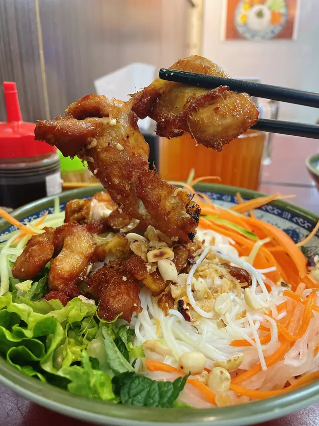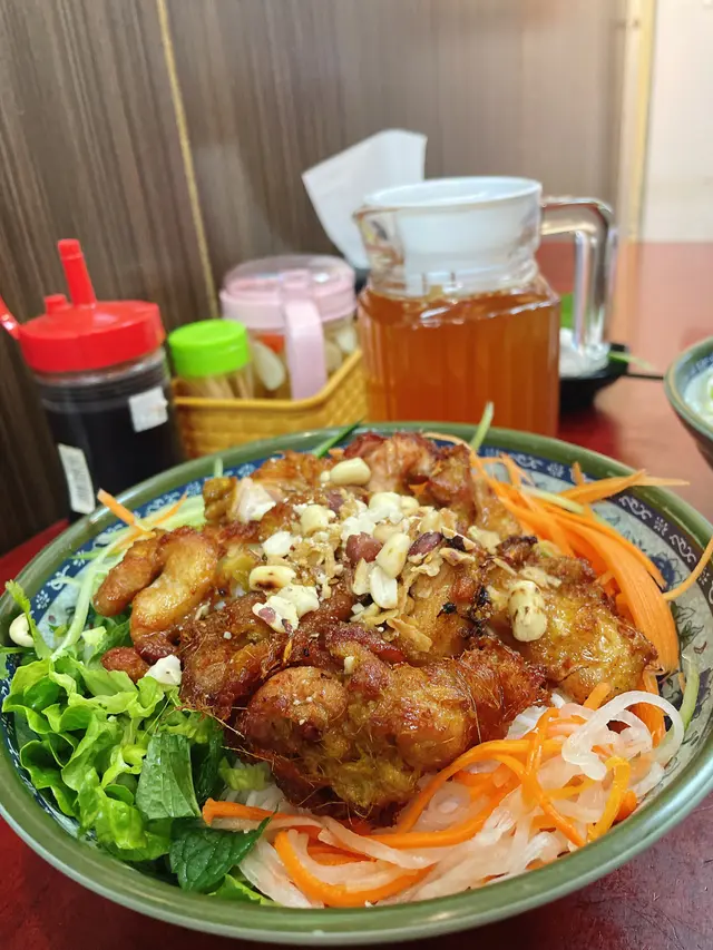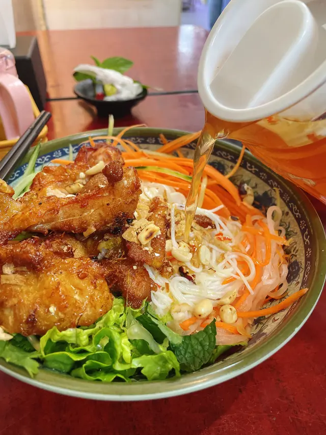 將酸汁同檬粉、蘿蔔絲、青瓜絲?花生碎拌勻