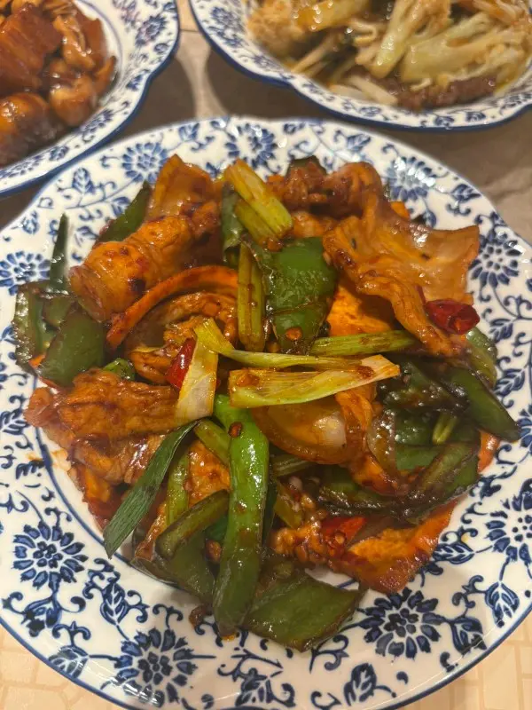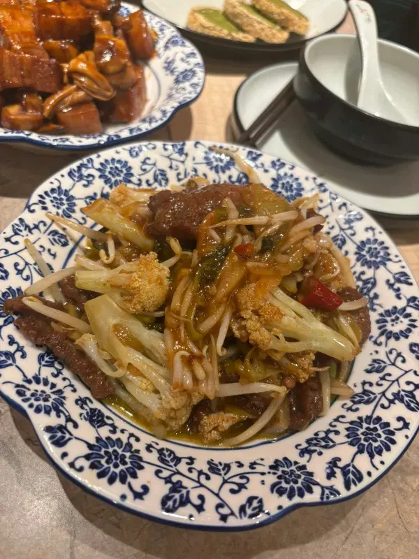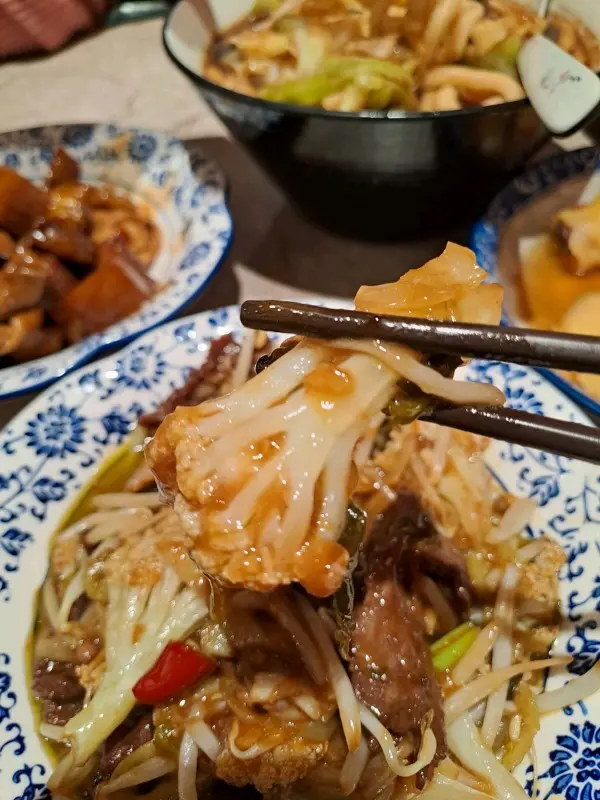 辣辣地惹味又醒胃, 薄切腩肉肥而不膩, 青椒芹菜香口爽脆。