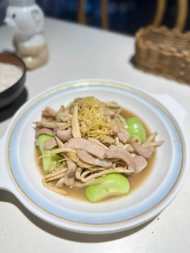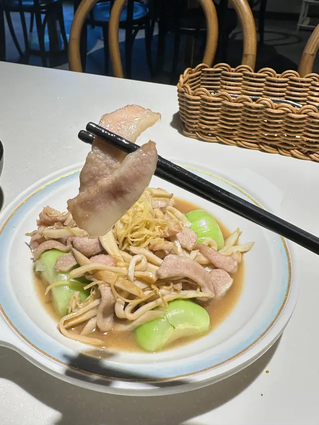 這道菜中有豐富的薑絲、菇和松阪豬,底下還有少量蔬菜,所有食材都吸收了濃郁的麻香味,讓每一口都充滿層次感。