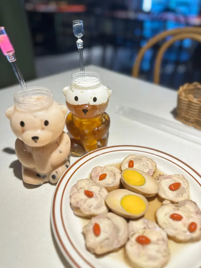 外型可愛的熊仔杯裡裝著椰汁和珍珠,口感非常Q彈,清爽可口,是餐後的好選擇。