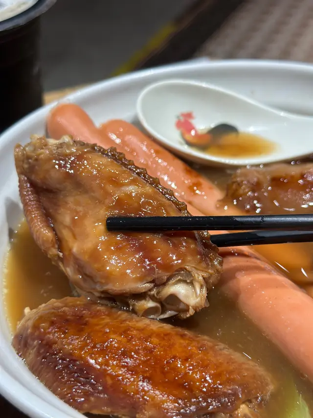 3餸揀咗瑞士雞中翼、秘製豬手同特長脆皮腸,怕太多肉所以揀咗菜底。🥬3樣嘅味道都唔錯,瑞士雞中翼、秘製豬手惹味,脆皮腸好長下,淡淡肉正!
