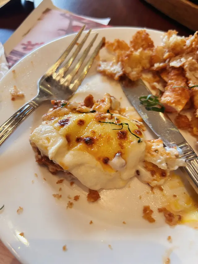 鍾意千層麵嘅一定會試勻曬全部餐廳嘅lasagna😭呢度同pici嘅比較似 都係用一個大碟裝著焗盤入面嘅千層麵 份量都幾大 表面已經焗得焦左 有D黑色嘅點點 畢開最上層嘅芝士下面就即刻溢出流動性強嘅白醬 白醬下面就係肉香味濃嘅肉醬🔥不過上面嘅芝士皮其實比較薄 好容易被下面嘅白醬蓋過左其他味 千層麵嘅存在感都唔算特別高