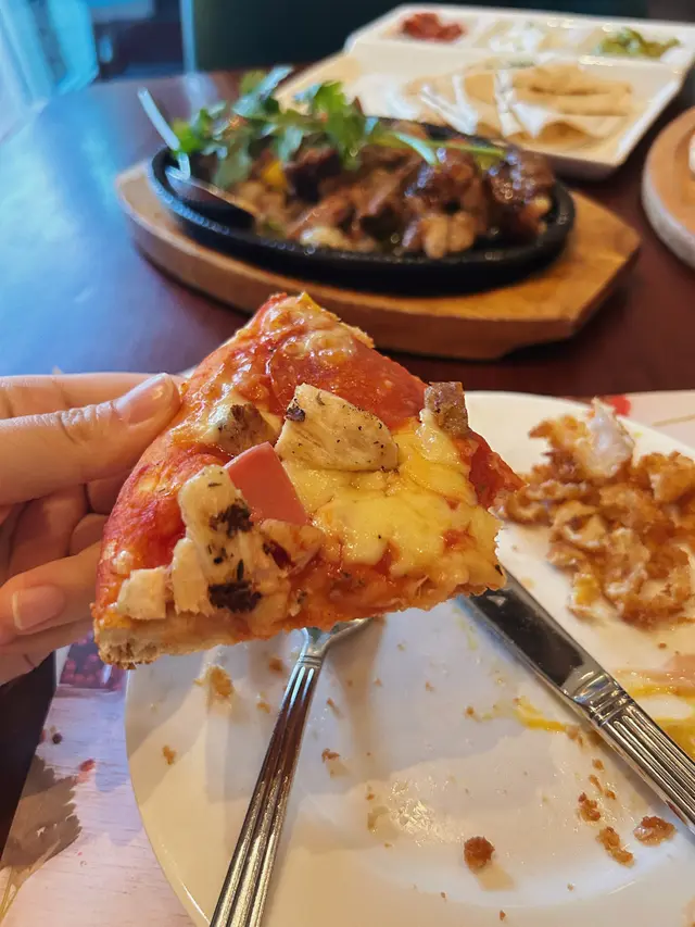 呢度pizza可以嗌薄底(脆)或者厚底 我地不嬲都鍾意厚身+芝士 以為成品都係薄薄地 但係原來咬落非常有麵包嘅原本香味!上面料都好多 雞肉 火腿 salami應有盡有 加埋識拉絲嘅芝士味道一流!