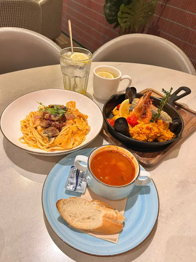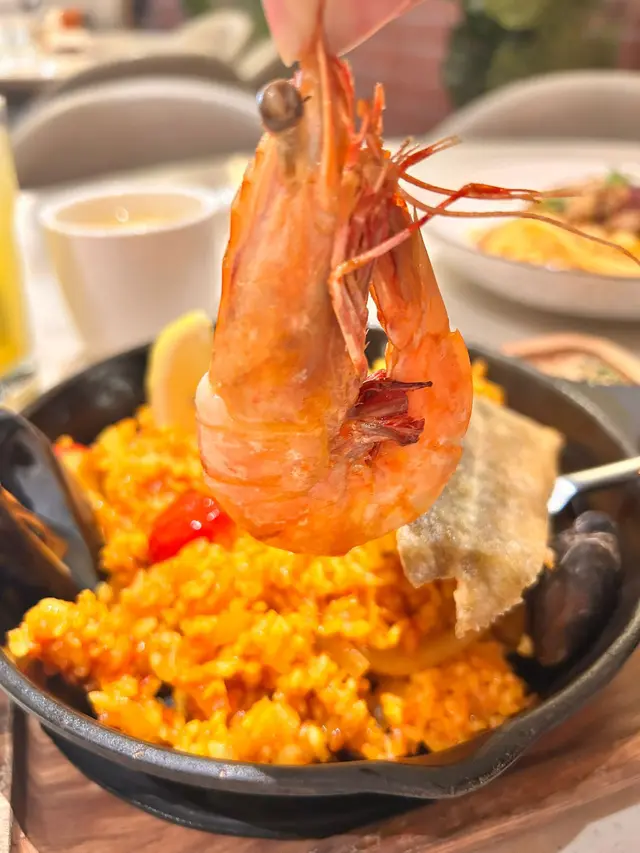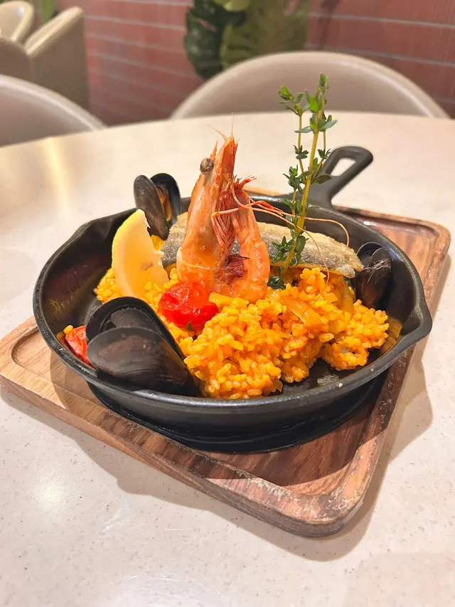 果然係招牌推介❗海鮮飯內有多款海鮮,包括青口、蜆、大蝦🦐及魷魚圈🦑,非常足料。米飯🍚配上蕃茄汁及車厘茄🍅伴碟,鮮味十足。