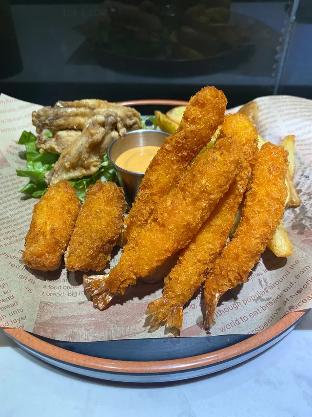 炸鹽酥單骨雞翼、蠔、海蝦、薯角