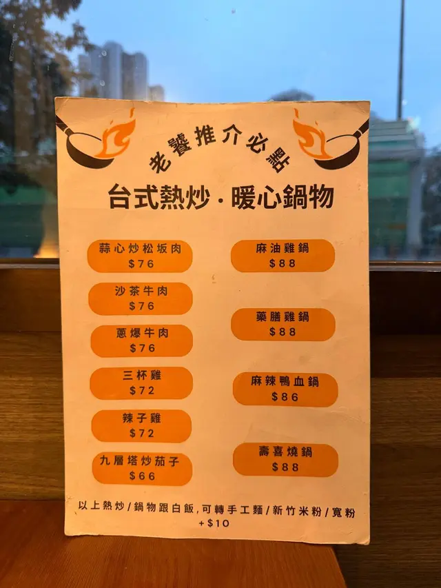 台式熱炒係呢期新推出嘅Menu,小菜可以配白飯,或者加錢配台式手工麵、新竹米粉或者寬粉。我哋就嗌咗呢個手工麵、湯底用牛骨湯熬製,味道唔會太鹹,配埋爽彈嘅手工麵,都幾夾🍜