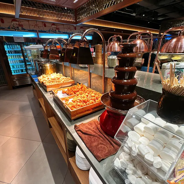 佢嘅甜品種類都好多,榴槤千層蛋糕,朱古力泡芙等等😍成個雪櫃櫃任你揀👍而且有一個朱古力噴泉,吸引好多大人細路去食😍