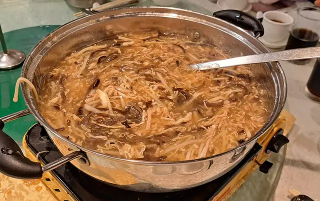 終於到了我參加公聯會蛇宴的唯一原因,三蛇湯,一上檯藥材味就撲面而來,油亮的湯色,滾熱的湯汁,相當暖胃但藥材味太重,烏雞味被壓下去,毫無甜味,感覺和以前飲的不是同一個味兒,明明之前可以飲3碗