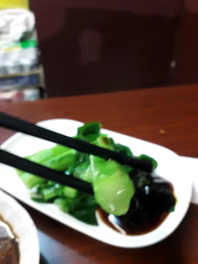 「興記麵食家」「油菜」裡面的「菜芯」,「菜芯」除了擁有蔬菜本身的新鮮味道之外,就只是依靠調味醬料「蠔油」裡面的鮮蠔鹹味輔助。