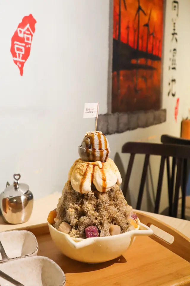 大大個超足料,有芋圓、花生黃豆奶蓋、雪糕,每層中間淋左仙草黑糖汁,甜甜地令整體冇咁寡。份量都幾大,建議3-4人share🤓!個人幾鍾意佢嘅黑芝麻雪糕~(小心機:個碗係貓形襯返隻貓腳印匙羹😜)