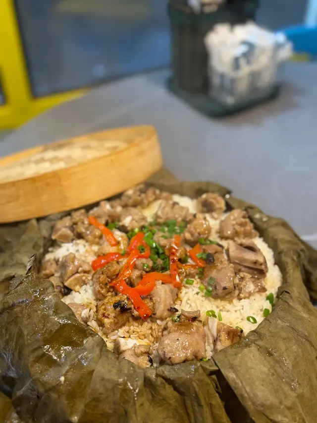 呢個籠仔蒸飯黎到真係呆左,簡直係巨型,大過個頭,荷葉唔係墊底而係包住成個飯,打開蓋後好似開禮物咁打開個飯,荷葉味好清香,排骨鋪滿係飯上面,淋埋豉油,呢個飯4-6人share食都夠,少人啲都建議帶定盒去打包