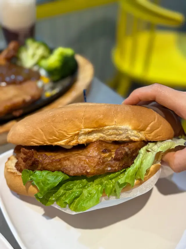 巨型豬扒包,入面包住一塊超厚豬扒,配埋番茄等配菜,食落都好濕潤