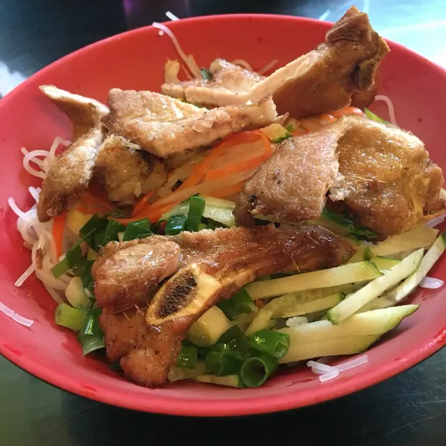香茅豬扒撈檬都幾好味。撈檬汁放喺枱面隨便仼落,檬粉上有油蔥,增加香味,檬粉唔會一舊舊,好易撈。香茅豬扒有啲靭,而且比較多骨,但係十分之香,亦唔算太油膩,又唔會太乾。對於我一個女仔黎講份量剛剛好。