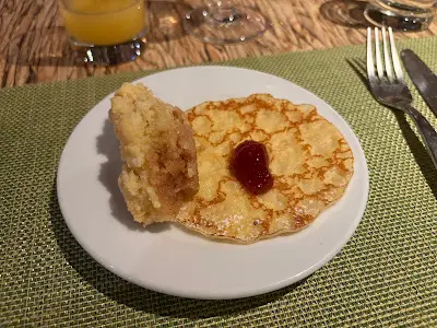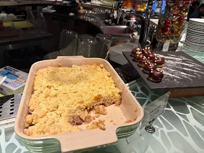 於是,我要了一份 Crepes 同一份 Apple Crumble。Crepes 本身已經有牛油香,加點果醬已經是非常甜美。而蘋果 Crumble,有不太濃的玉桂香,剛好襯托出蘋果批的香而又沒有奪走蘋果的味道。也是令人感滿足的一個熱食甜品。