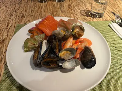 而我取回來的第一碟食品,就是海鮮。有螺,有青口,有蜆,也有煙三文魚。所有海鮮都有該有的鮮味。當中,青口是最鮮美可口的。