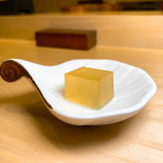 師傅說這個啫喱是用了檸檬及柚子基因混合而成的新植物,兩種果味亦能同時品嚐到,酸酸甜甜的作為中場休息,可以清一清味蕾。