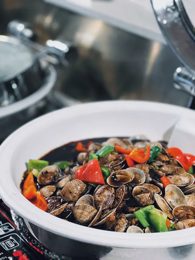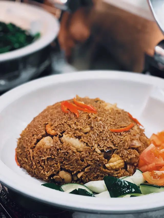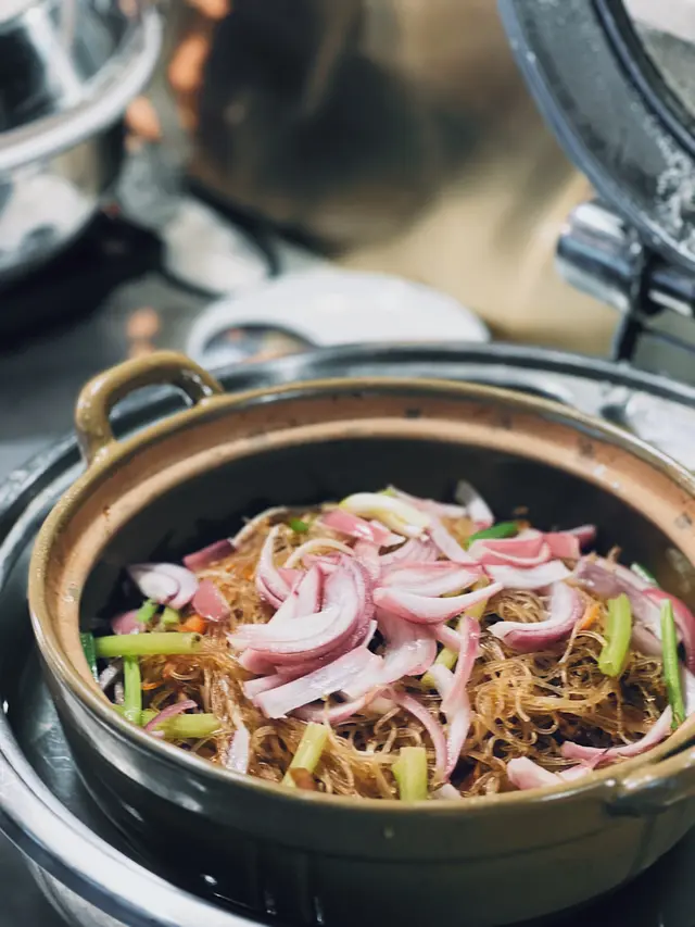 熱盤方面都好有誠意,特別推介個海鮮粉絲煲🍲,入邊足料到爆,有芹菜、紅蘿蔔、鮑魚、蝦肉、蜆肉、魷魚等,粉絲吸晒d海鮮精華,鮮甜到震!印尼炒飯都吾馬虎,有帶子、蝦仁、魷魚、蜆肉、鮑魚,食落好香口。另外仲食左d豉汁炒蜆、星洲咖喱三文魚頭同燒豬排骨,味道好正宗😋。