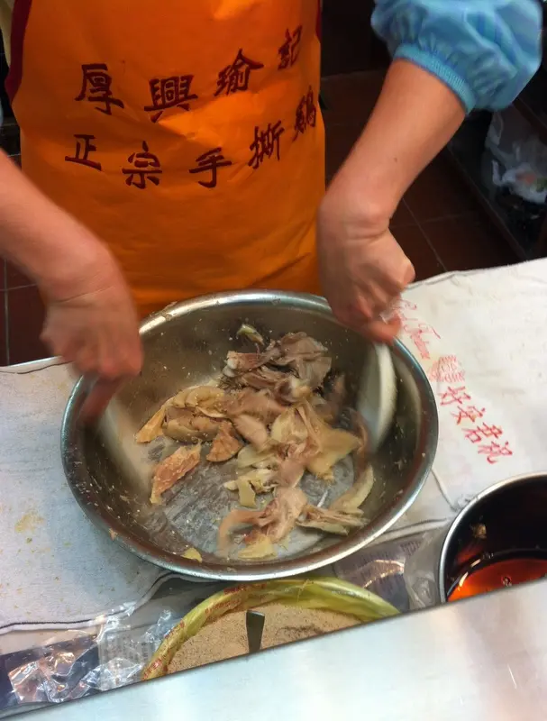 下單後店員就為我們拿出半份雞肉,開始拌入數種調味粉令雞肉味道更佳!