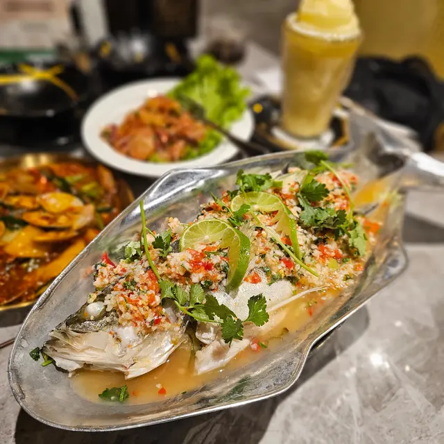 好細心,另外附上多碗湯汁,因為明爐嘅關係就唔怕消乾喇;有烏頭或鱸魚可揀,我哋揀咗鱸魚,肉質鮮甜嫩滑,泰式醬汁與青檸嘅配搭使得魚肉食落更顯清新好味。