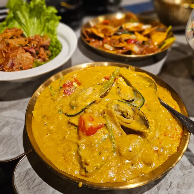 我哋食滿$300,所以換咗呢份咖喱青口,都大大碟,完全冇揸流灘㗎。