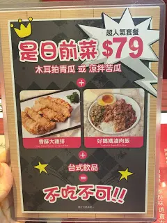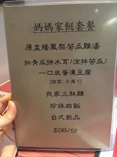 餐牌上大部分的單點食物, 也可+$22配台式飲品一杯及滷水雞翼/ 滷水大腸/ 滷水豆腐/ 白飯, 及加$28配原盅蔭鳳梨苦瓜雞湯。