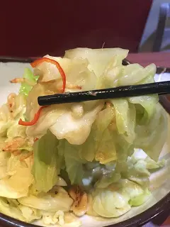 高麗菜即是我們的椰菜, 菜味清新, 爽甜而脆爆水, 炒得不油膩, 櫻花蝦不會太細隻, 件數頗多, 蝦的鮮香味頗濃厚, 這碟菜都好大碟, 份量十足, 相比起茶餐廳幾十元一碟小小烚菜, 這一碟實在有誠意太多, 喜歡吃菜的人大滿足!