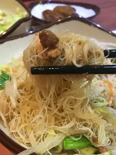 採用台灣新竹米粉, 米粉特別幼細, 炒米粉的材料有銀芽、蔥, 滷肉是炒完後放在上面的, 炒米粉的口感一流, 幼細爽彈, 不會煮到糊在一起, 很多香蔥增添風味及口感, 炒米粉和炒高麗菜一樣不多油, 但米粉味道稍咸。滷肉不愧為餐廳名菜, 香噴噴口感軟嫩, 有濃郁滷肉醬香, 滷肉Q嫩不會乾巴巴, 很像在台灣吃到的味道。
