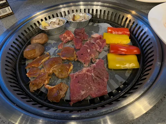 燒烤區,肉類種類繁多、黑椒牛扒、雞珍、五花腩肉,調味味道不錯👍,唔需要再增加調味。