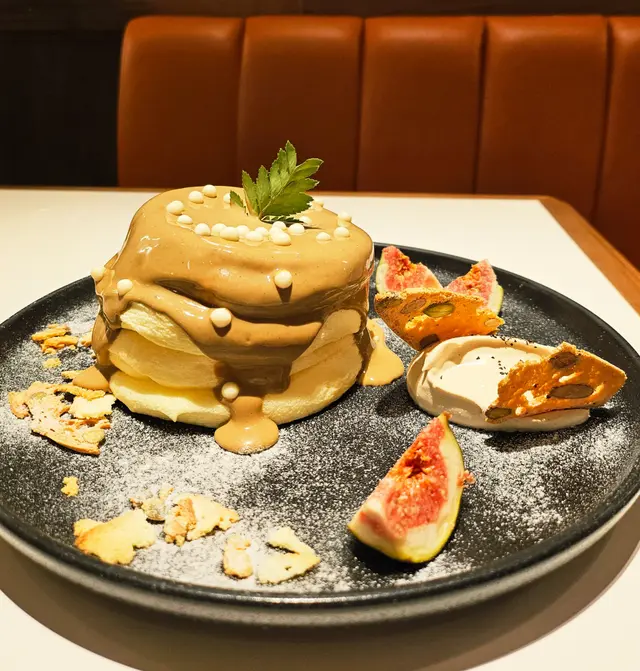 到這兒用膳絕對不能缺少蓬鬆柔軟嘅人氣Pancake~絕對係舌尖上奢華享受🫦 這款Pancake淋上濃郁的伯爵茶醬,搭配甜美的無花果,面層撒滿白朱古力脆米,大大增添甜蜜口感,每一口都充滿驚喜🥰