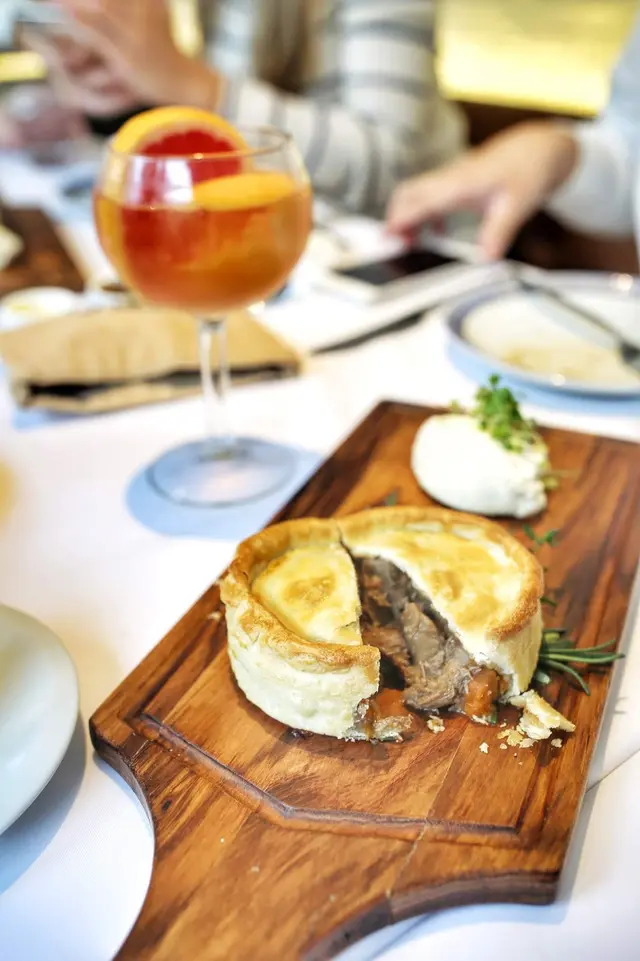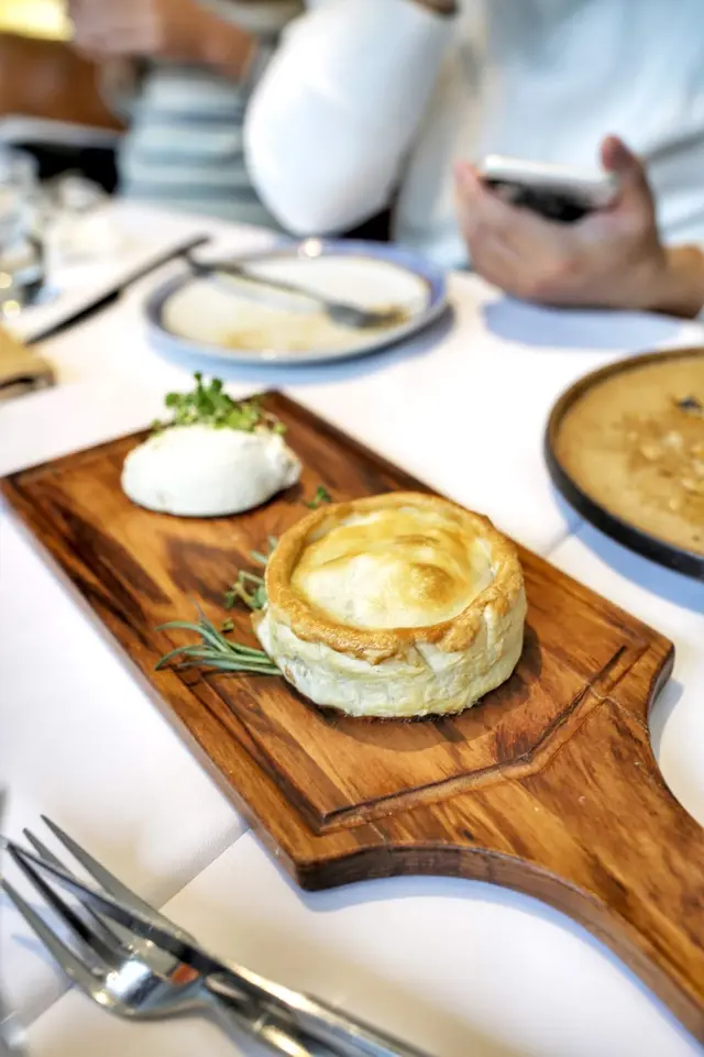 接著的 獵人鷓鴣批 $190 也很精彩:大廚將鷓鴣與菇菌一起焗煮後,再把鷓鴣肉從骨腔中撕出,並用鷓鴣骨以慢火熬製成醬汁,並放置在自家製金黃色酥皮內焗香,相當誘人;享用時記得沾上松露沙巴翁醬,會為批身帶來陣陣松露香氣,口味頓時昇華,筆時也好想念!