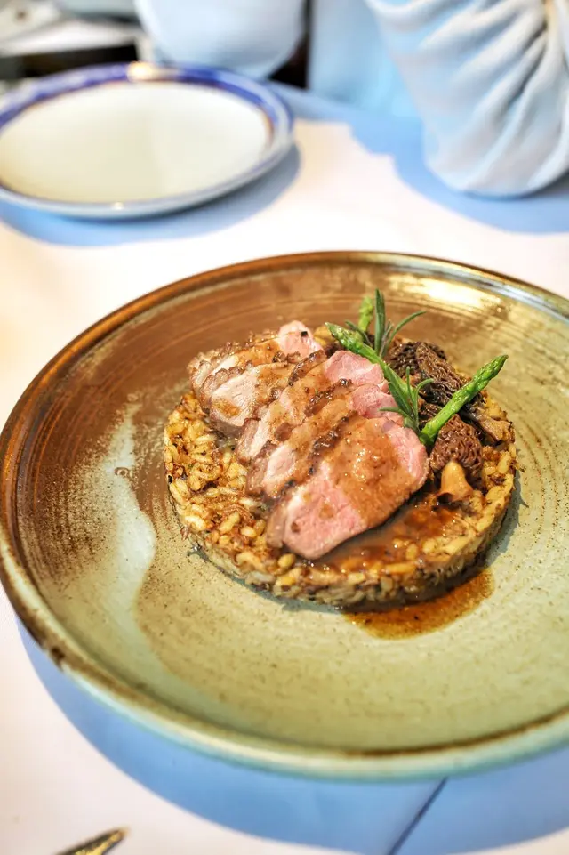 大廚早已獵走我的心,但接著的 葡萄牙獵人鴨飯 $310 同時也填飽我的胃:大廚特別由歐洲當地引入野鴨,鴨胸肉簡單香煎,鴨腿肉部分煮成鴨湯用來煮飯,部分則加洋蔥和葡萄牙砵酒煮至入味,再混入米飯中焗香,所以每一口都是濃濃的鴨味,配上摩利菌更添美味!