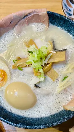 朋友點嘅 #真鯛白湯拉麵 亦相當出色,#鯛魚白湯 掛晒上拉麵條,鮮味十足!滑滑嘅 #鯛魚片,同另外加配嘅 #醬漬飽魚 同 #溏心蛋,令整個口感更加豐富😋