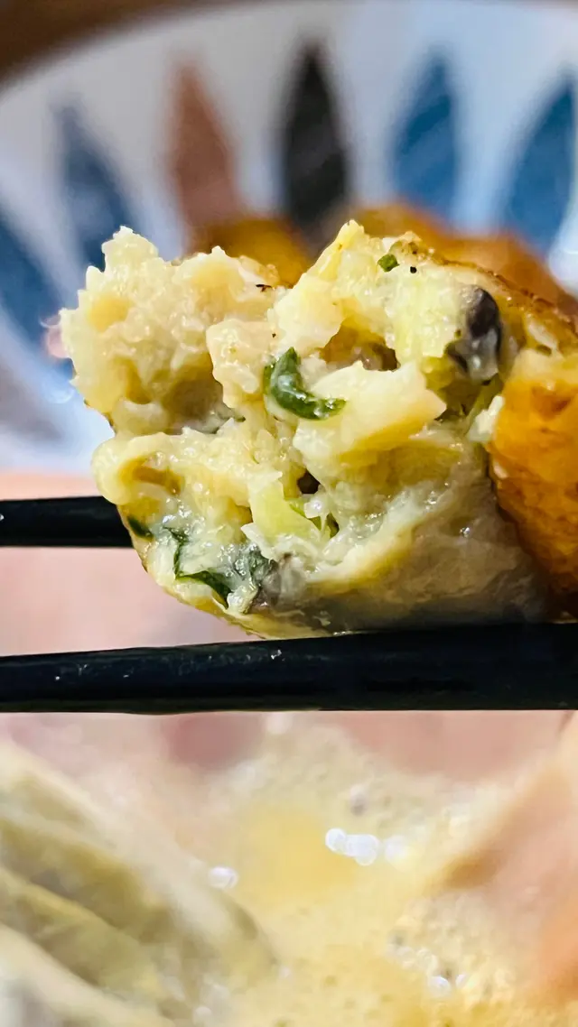 最後店員介紹我哋一定要試吓佢哋嘅名物 #炸雞皮餃子!🥟餃子外皮煙煙韌韌,咬落去啖啖蔬菜同肉香... 果然冇介紹錯!