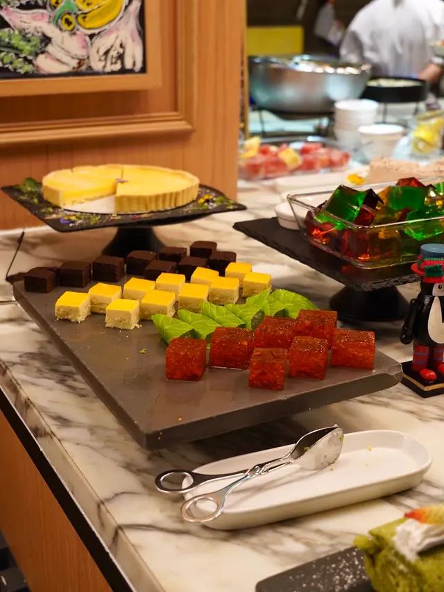 抹茶蛋卷、木糠布甸、藍莓芝士蛋糕、檸檬撻、四色啫喱、brownie、紅棗糕
