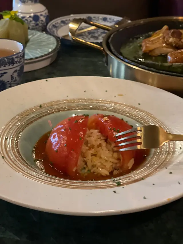 Fried Rice with crabmeat stuffed in a Japanese Tomato