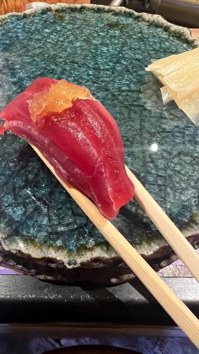🐟 #吞拿魚赤身 加上白胡椒菠蘿蓉 - 菠蘿嘅清甜襯托吞拿魚嘅魚油香,味道非常特別!