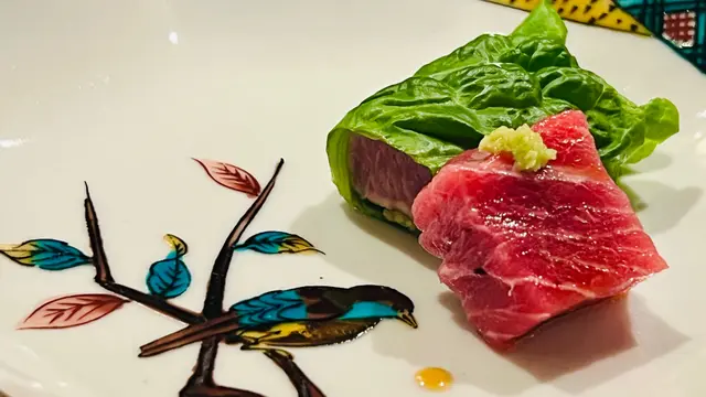 🐟 #大拖羅刺身 口感肥美,火炙部份用 #包菜🥬 包裹一齊食,淡淡嘅魚油綿綿嘅口感,好有新意!