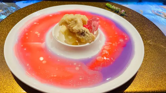 🍤 #魔鬼魚鰭天婦羅 配上用酸汁 x 紫椰菜汁做成嘅素醬汁,造型非常壯觀,而且健康得來又好味!
