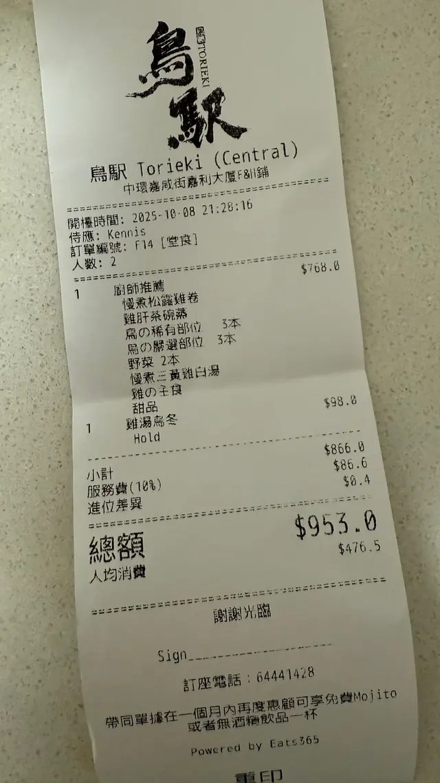 廚師發辦套餐 嚐盡雞肉多變風味 菜菜太等级32025-10-0996 浏览 关注 位於中環嘉咸街的「鳥駅」,專注於以雞為主題的串燒體驗。Torieki Tasting Menu $每位768,從松露雞卷、雞肝茶碗蒸,到雞心、雞軟骨等特色部位,再配上時令蔬菜與雞湯,風味層層遞進。當中廚師長推介的鴨肝更是驚喜之作,值得一試。結尾來一碗雞湯烏冬,湯頭醇厚,暖心滿足。餐廳環境寬敞,設計新派,設有吧枱座位,可近距離觀賞師傅手藝。整體氛圍輕鬆,很適合下班後與朋友共聚,邊嚐串燒邊小酌,享受悠閒一夜。以上食记乃用户个人意见 , 并不代表OpenRice之观点。赞好分享廚師發辦套餐 嚐盡雞肉多變風味 鳥駅 https://s.openrice.com/QrLT0KRbU00检举 张贴 评分5味道5环境5服务5卫生5抵食用餐途径堂食